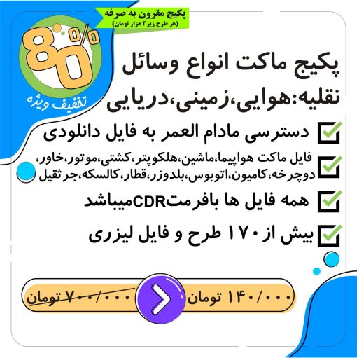 فروش ویژه بیش از 170طرح و الگو لیزری طرح پکیج ماکت انواع وسائل نقلیه که توسط دستگاه برش و حکاکی لیزری به راحتی قابل برش بوده و با کمی تغیرات میتوانید نمونه خوب از این پکیج ماکت انواع وسائل نقلیه را به صورت تعداد تولید نمایید.